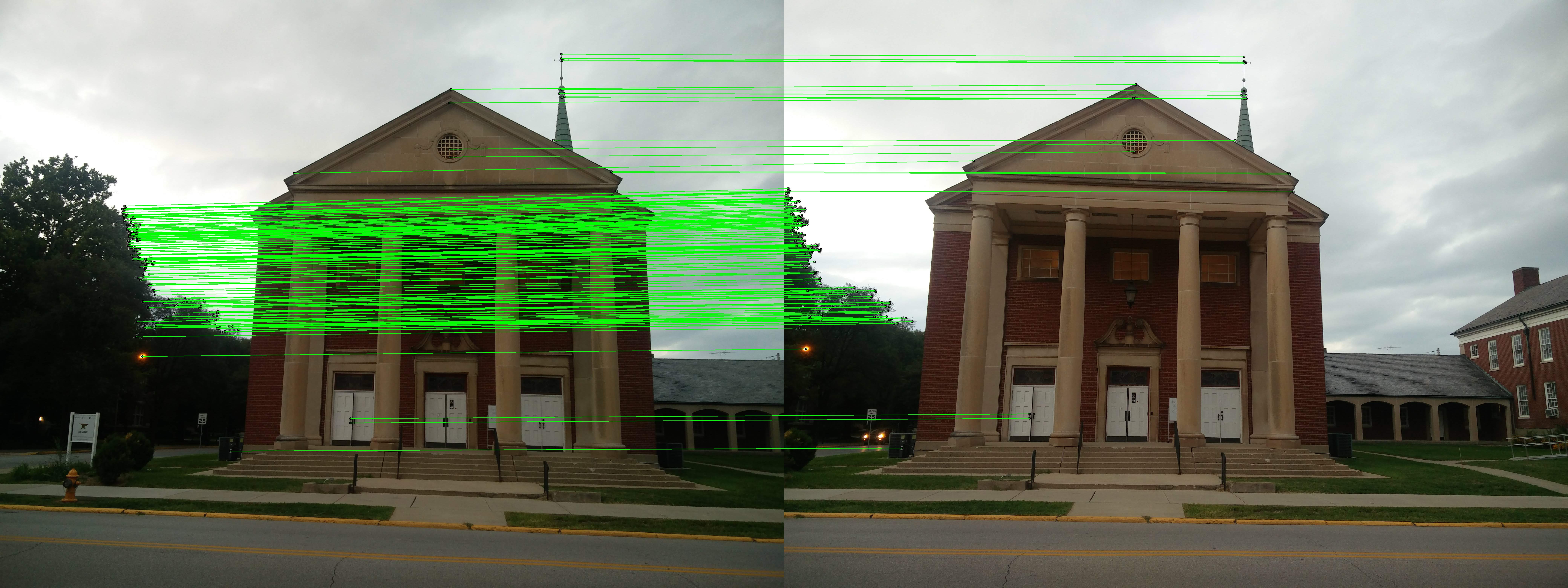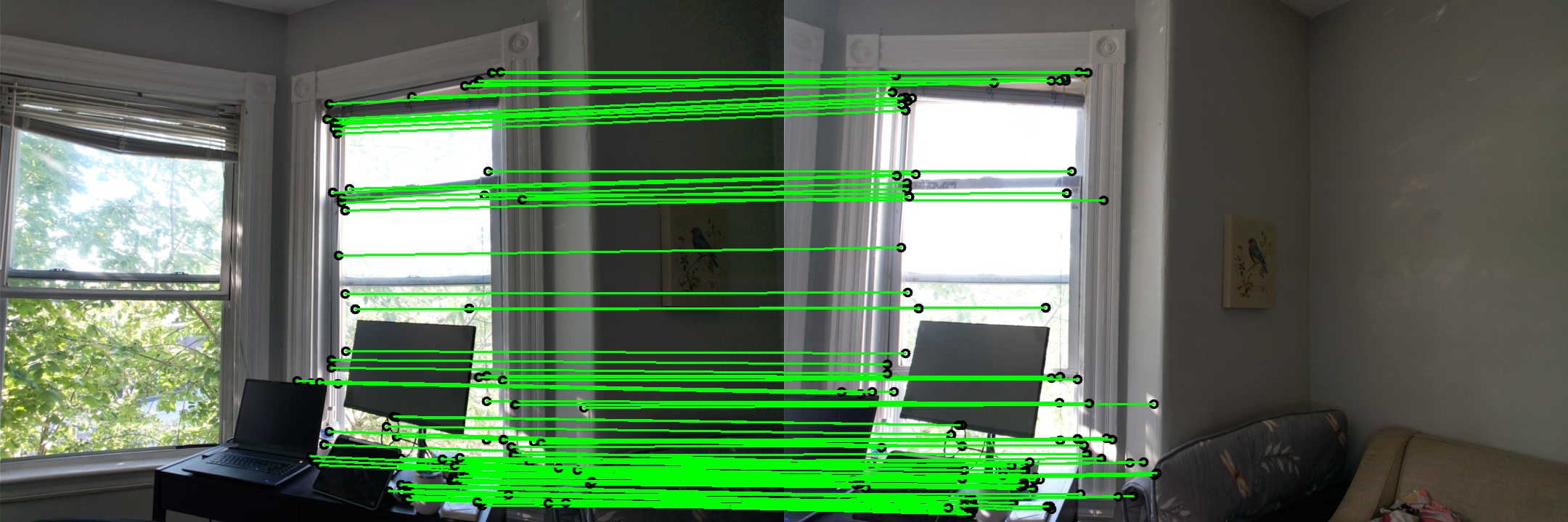 These images display the feature matching results before and after applying RANSAC. The left image shows the inliers (correct matches), while the right image displays the outliers (incorrect matches):