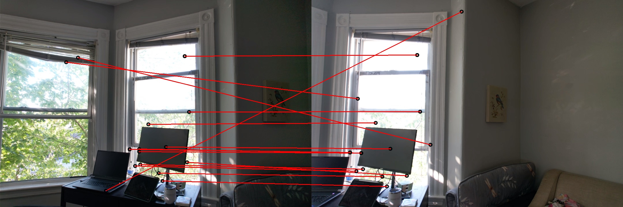 Correspondences between images are established using NCC, defined as after getting the correspondence we need to filter out the wrong correspondences such as outlier:
